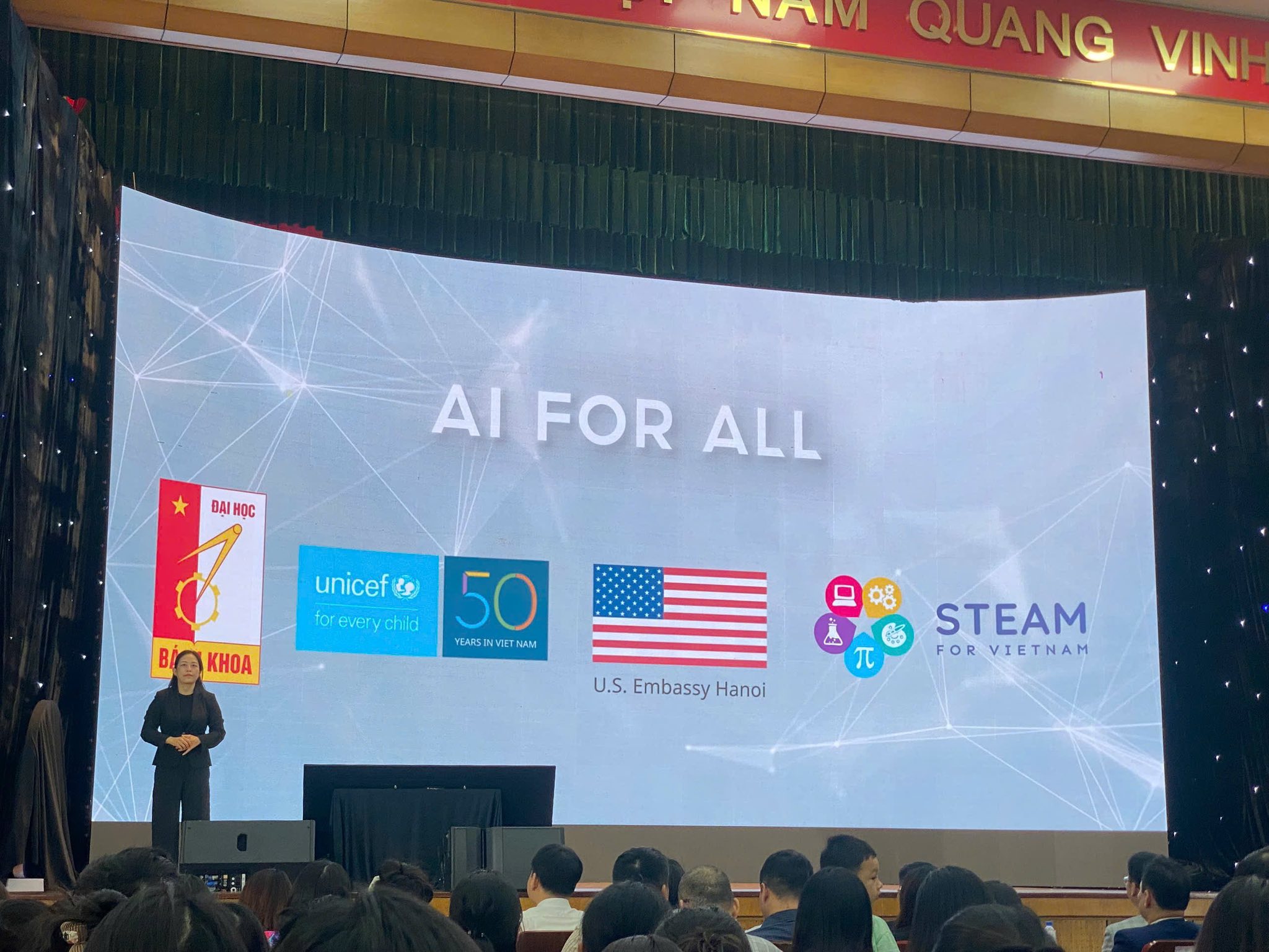 Thực hiện Công văn số 774/SGDĐT-CTHSSV của Sở GD&ĐT Ninh Bình và Công văn số 2497/ĐHBK-TSHN của Trường Đại học Bách Khoa Hà Nội, đồng thời nhằm nâng cao năng lực đội ngũ cán bộ, giáo viên trong thời kỳ chuyển đổi số, đoàn cán bộ quản lý, giáo viên Trường THCS Lý Tự Trọng đã tích cực tham gia các hoạt động trải nghiệm, tọa đàm và tập huấn chuyên đề trong khuôn khổ sự kiện “STEAMese Festival 2025: Làm chủ AI – Ai cũng có thể”, do Trường Đại học Bách Khoa Hà Nội tổ chức.