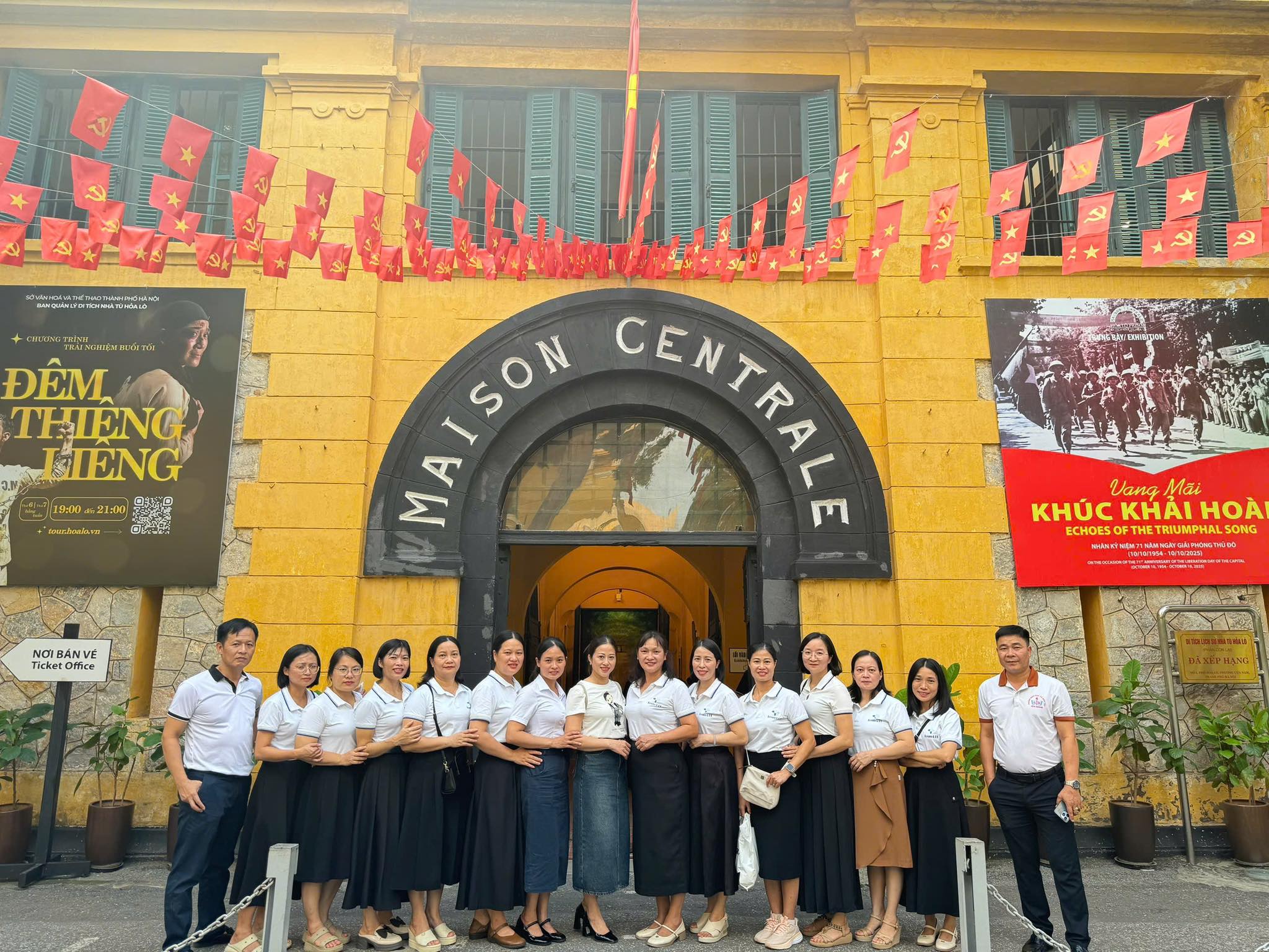 Bên cạnh hoạt động chuyên môn, đoàn công tác còn có hành trình về nguồn đầy ý nghĩa. Tại Quảng trường Ba Đình, các thầy cô đã thành kính dâng hương, tưởng nhớ Chủ tịch Hồ Chí Minh – vị lãnh tụ kính yêu, người đã đặt nền móng cho sự nghiệp giáo dục cách mạng Việt Nam. Vào lăng viếng Bác không chỉ là dịp tri ân sâu sắc mà còn nhắc nhở mỗi nhà giáo về sứ mệnh “trồng người” cao cả mà Bác từng căn dặn. Khi đến thăm di tích lịch sử Nhà tù Hỏa Lò – nơi ghi dấu những năm tháng đấu tranh kiên cường, bất khuất của cha ông – đoàn càng thêm thấu hiểu về ý thức trách nhiệm trong việc truyền thêm tinh thần yêu nước, lòng tự hào dân tộc qua từng bài giảng tới các em học sinh.