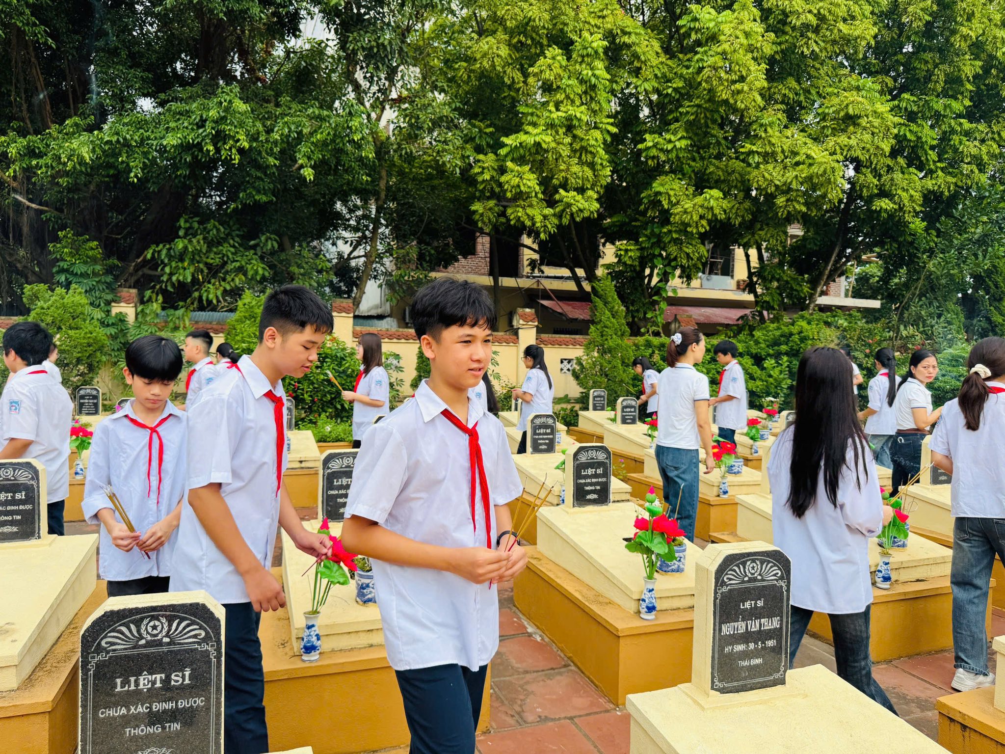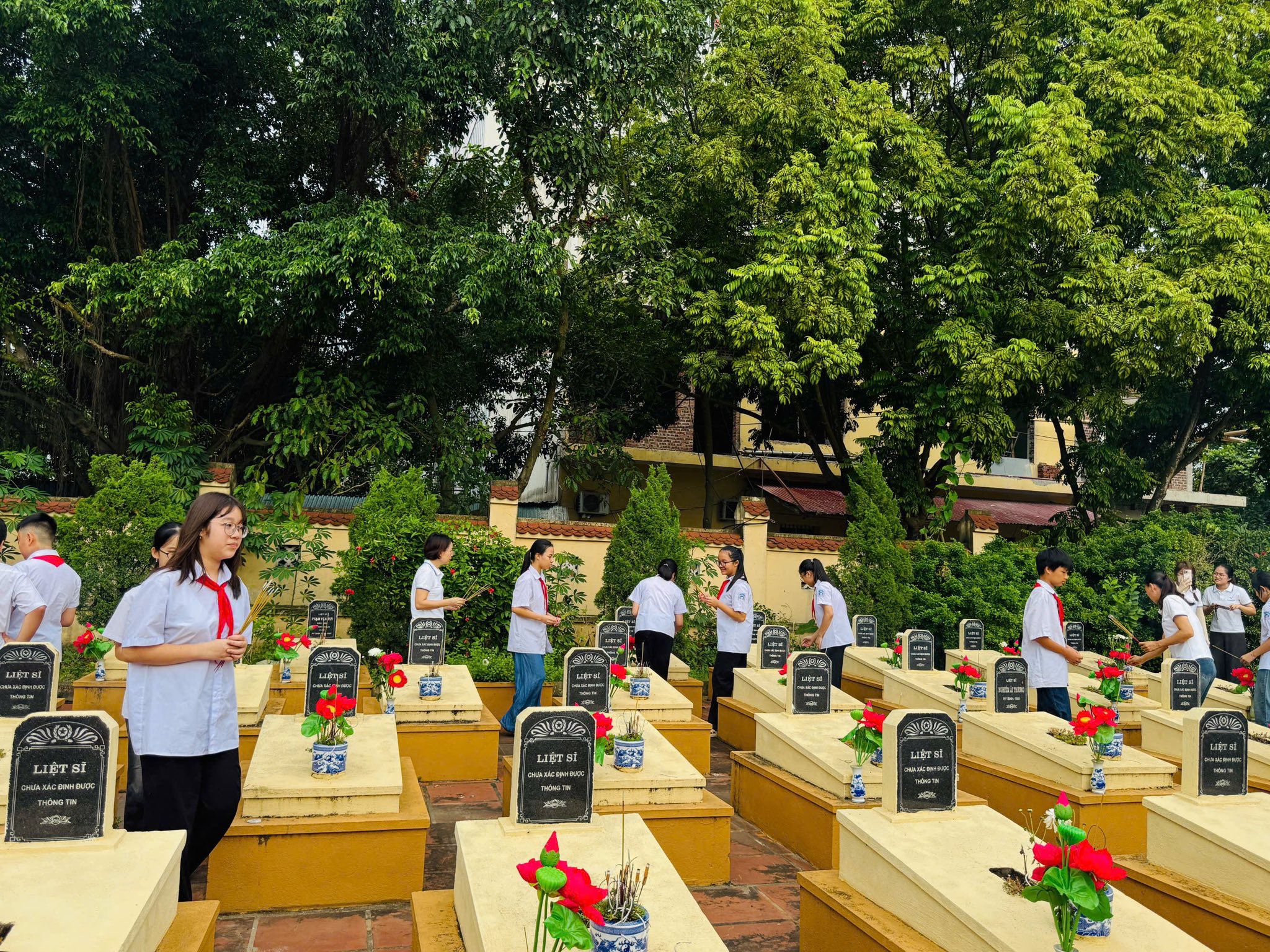 Hoạt động dâng hương tưởng niệm, tri ân các anh hùng liệt sĩ còn là bài học sống động về đạo lý “Uống nước nhớ nguồn”, là dịp để các em hiểu sâu sắc hơn giá trị của hòa bình, độc lập. Đó cũng chính là một phần quan trọng trong công tác giáo dục toàn diện mà nhà trường đang nỗ lực vun bồi.