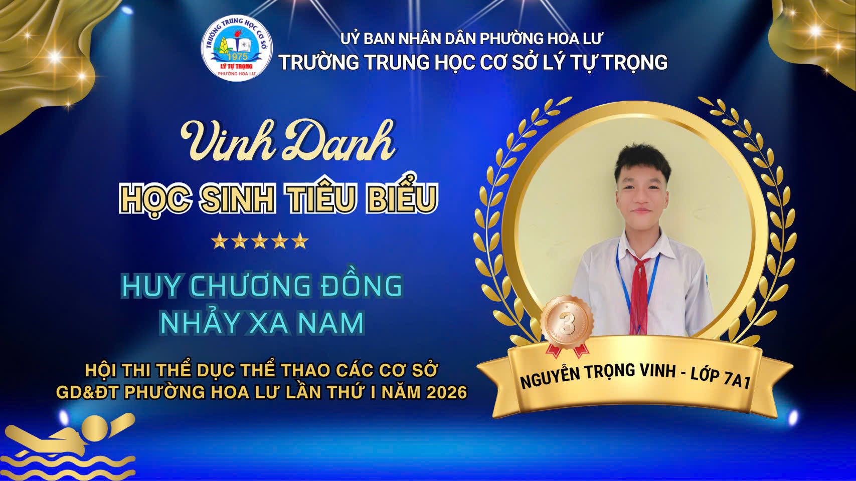 1. Em Nguyễn Trọng Vinh – lớp 7A1 HCĐ nội dung nhảy xa nam.