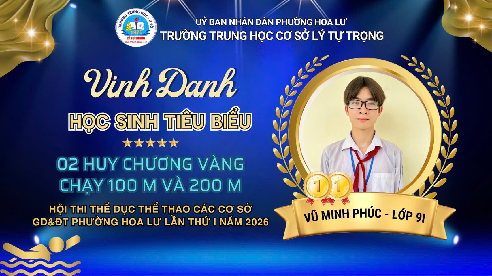 1. Em Vũ Minh Phúc – lớp 9I với 2 HCV nội dung chạy 100m và 200m nam.