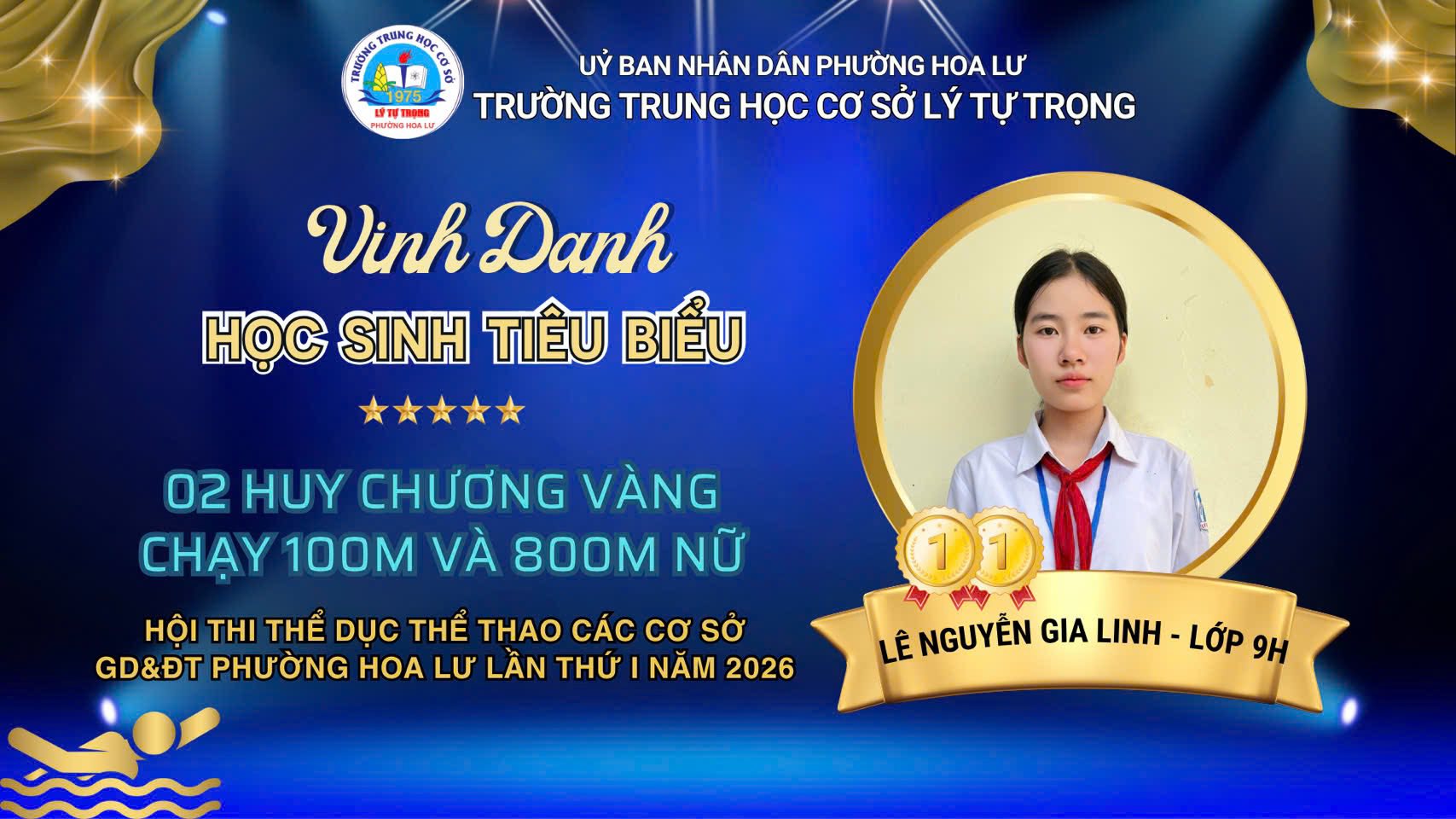 4. Em Lê Nguyễn Gia Linh – lớp 9H 2 HCV nội dung chạy 100m, 800m nữ.