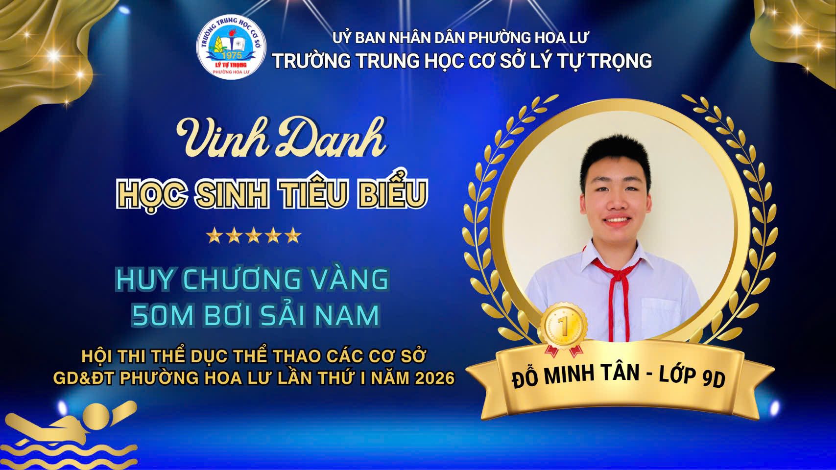 7. Em Đỗ Minh Tân – lớp 9D HCV nội dung 50m bơi sải nam.
